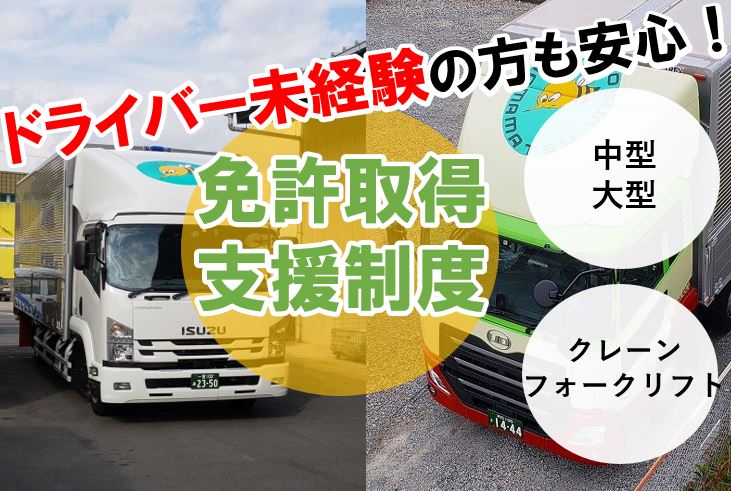 物流業界未経験の方、キャリアップを目指す方のため「免許取得費用」を負担しサポート