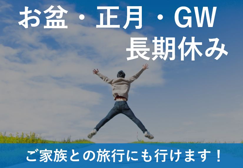 - 隔週土曜、日曜、夏季及び年末年始休暇、有給休暇